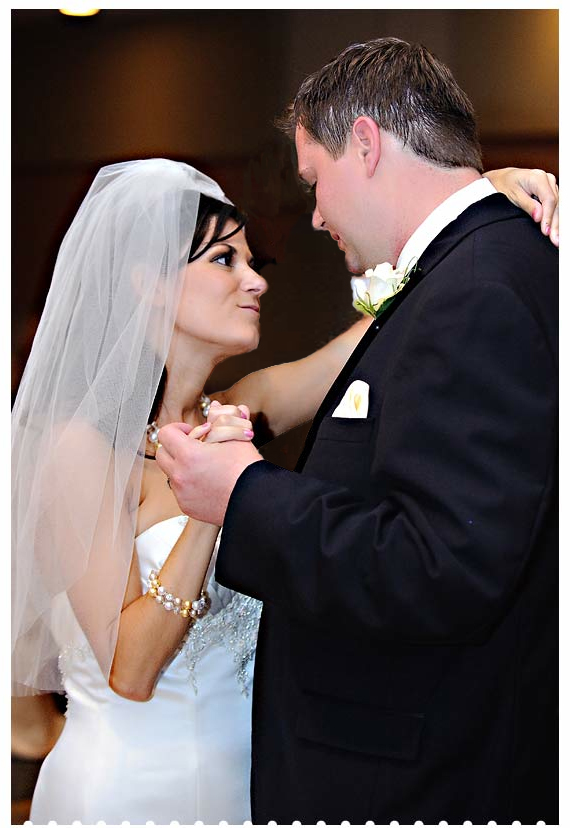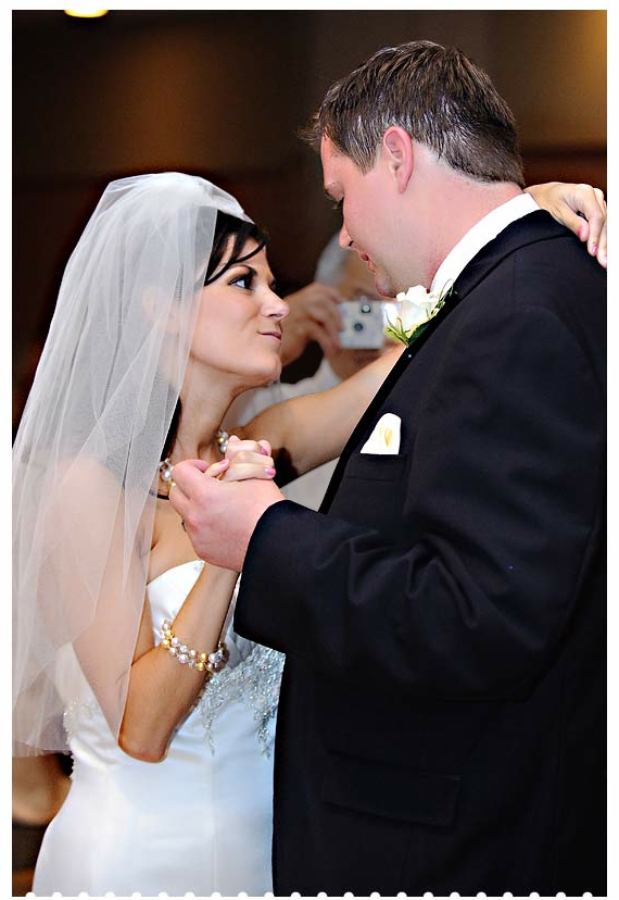This photo and the one below both came from another photographer's blog about how the difficulties of wedding photography can make some shots unusable. She claimed that the photos were "ruined for the couple" and "beyond salvaging." While this first photo was impacted by another photographer's auto-focus light, I would hardly